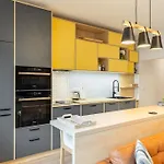 Para mayor comodidad, el apartamento Winter Haven Modern Retreat In Central Bratislava dispone de una cocina con cafetera, nevera y un horno.